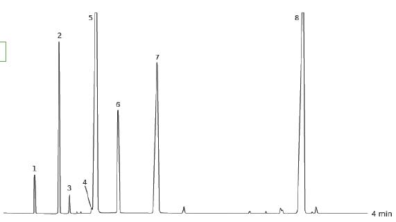 升溫程序:50℃ (0.1min), 50℃ /min, 250℃ 樣品:用環己烷稀釋成 1% 的樣品濃度