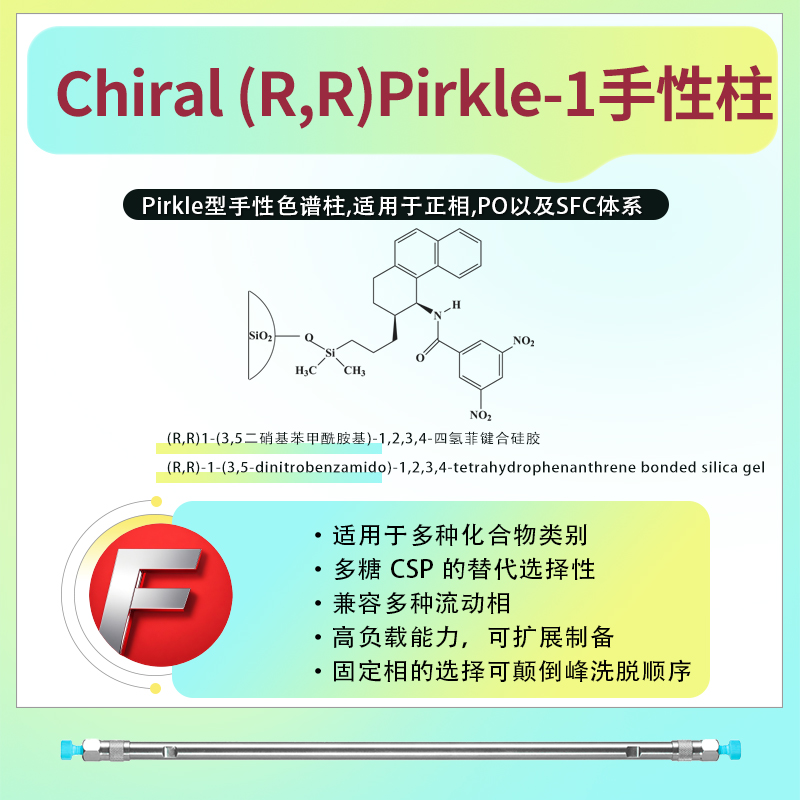 • Chiral (R,R)Pirkle-1 手性柱 Chiral (R,R)Pirkle-1 手性柱是一種具有手性識別特性的固相填充柱,主要用于對立體異構體具有分離作用